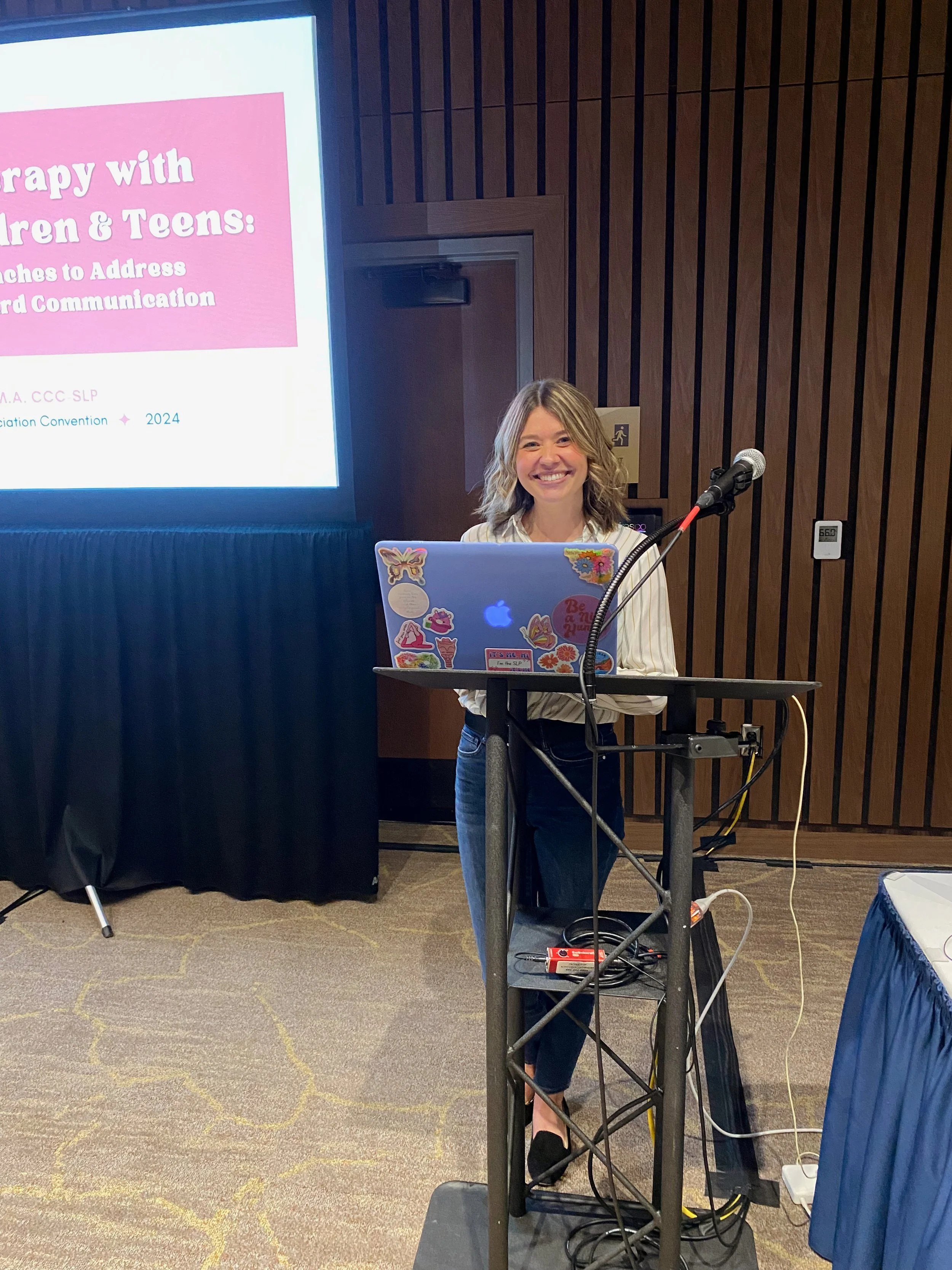 Ashley is a certified speech-language pathologist based in Louisville, Kentucky at a large private pediatric practice. In addition to her master’s degree in Speech-Language Pathology, she earned a Graduate Certificate in the Advanced Treatment of Fluency Disorders. Ashley is passionate about stuttering treatment and continues to seek out opportunities to expand her knowledge and clinical skill in this area. Ashley holds a Spero Ally of Stuttering Seal designation, requiring yearly professional development and active involvement in the stuttering community. She is a co-leader for the Louisville chapter of the National Stuttering Association and leads monthly stuttering support groups for children. Ashley is deeply committed to supporting fellow SLPs. She regularly provides professional development and trainings for state conferences, school districts, SLP continuing education opportunities, and private practices, with a focus on building clinician confidence, clinical reasoning, and practical application of stuttering-affirming, evidence-based approaches. She values creating supportive learning spaces where SLPs feel empowered to ask questions, challenge outdated narratives, and grow their approach to stuttering.